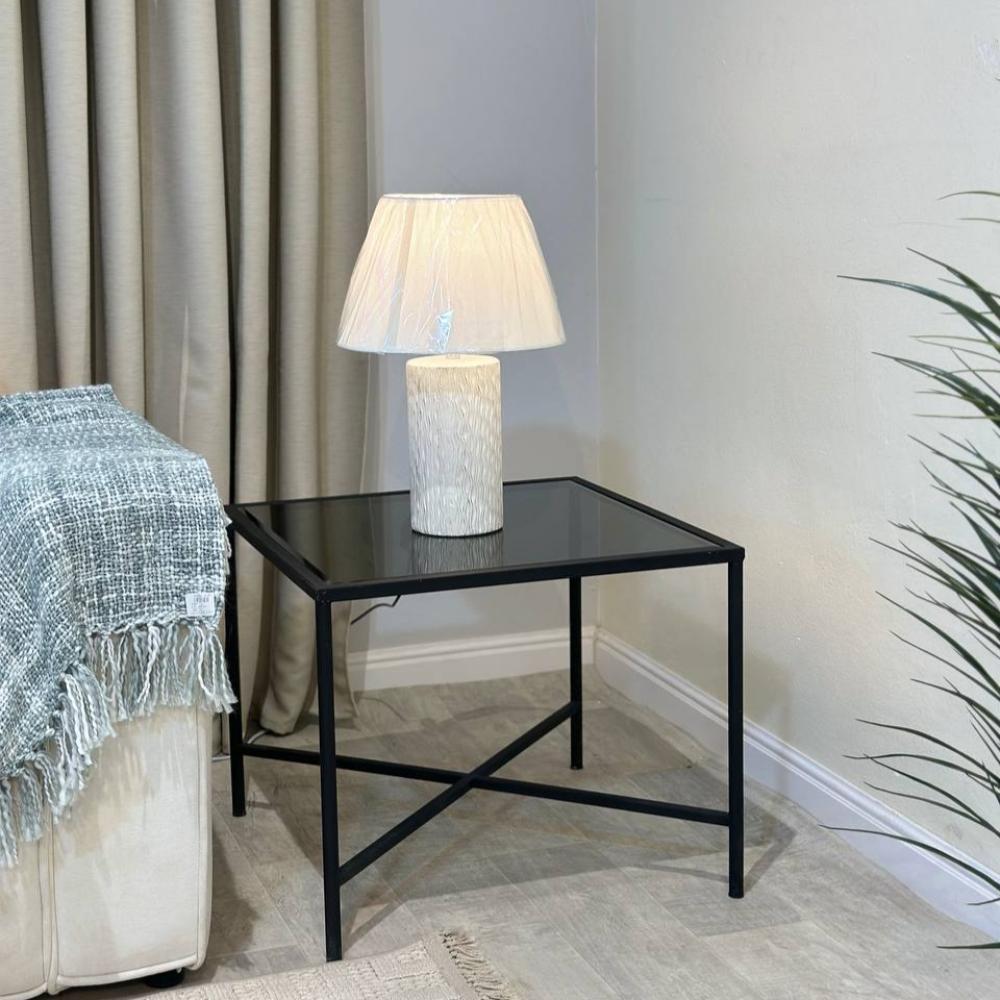 أضف لمسة من الفخامة والرقي إلى منزلك مع هذه الزاوية المربعة المصممة بدقة وأناقة. يتميز التصميم بإطار معدني باللون الأسود وسطح زجاجي أسود يعزز الطابع العصري والراقي لأي مساحة.
