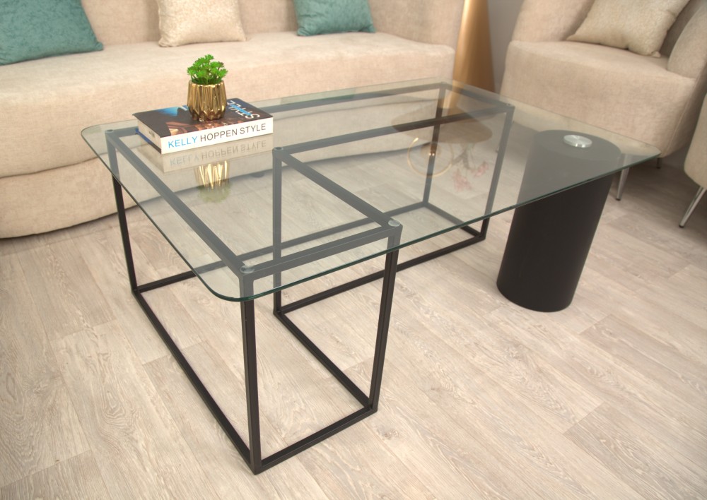 طاوله اساسيه مصنوعه من الحديد وسطح من الزجاج
