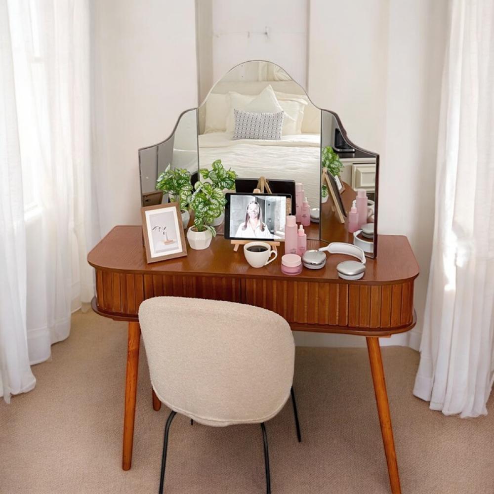 مثالي لترتيب مستحضرات التجميل أو تزيينه بديكورات مثل الشموع، الفازات، أو النباتات المجففة.