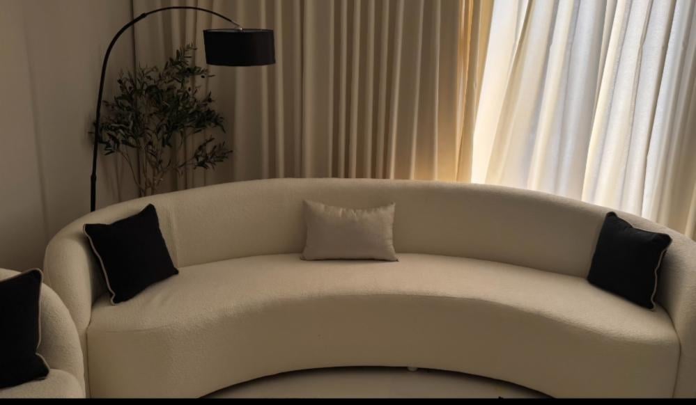 - خامة البوكليه الناعمة: تضفي ملمسًا دافئًا ومميزًا يعزز تجربة الاسترخاء.